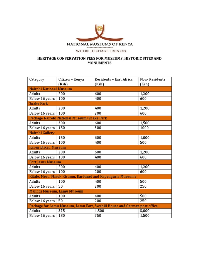 Museum Entrance Rates PDF